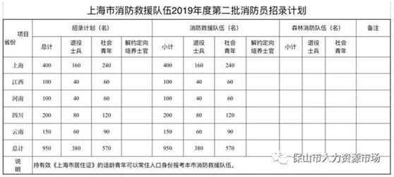 1.上海市消防救援隊(duì)伍2019年度第二批消防員招錄計(jì)劃