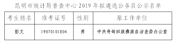 昆明市統(tǒng)計局2019年擬遴選公務員人選公示