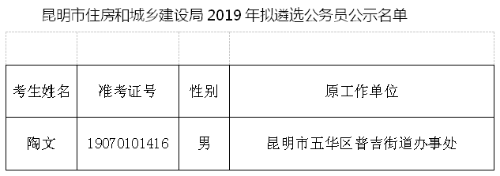 昆明市住房和城鄉(xiāng)建設(shè)局2019年擬遴選公務(wù)員人選公示