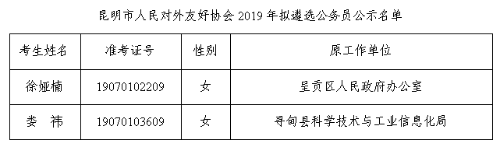 昆明市人民政府外事辦公室2019年擬遴選公務(wù)員人選公示