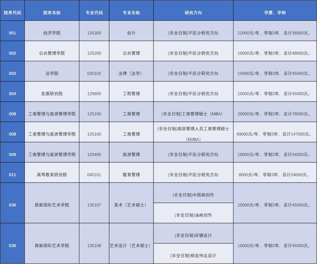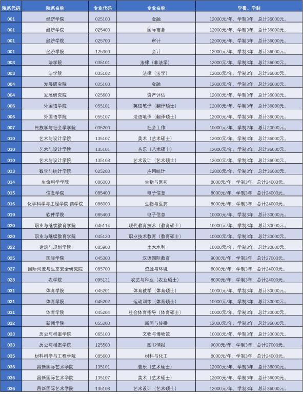 2.全日制專業(yè)學(xué)位學(xué)費標(biāo)準(zhǔn)見下表: