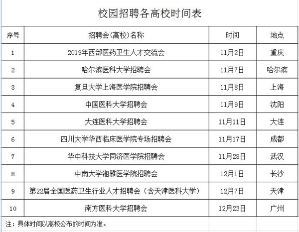 根據(jù)云南省衛(wèi)健委關(guān)于人才招聘的相關(guān)精神,結(jié)合昆明醫(yī)科大學(xué)第一附屬醫(yī)院人才需求,我院將于近期到省外部分醫(yī)學(xué)高等院校開(kāi)展招聘活動(dòng)。此次校園招聘活動(dòng)主要針對(duì)2020年的應(yīng)屆畢業(yè)生,歡迎廣大畢業(yè)生積極參與?,F(xiàn)將校園招聘活動(dòng)計(jì)劃及崗位需求通知如下: