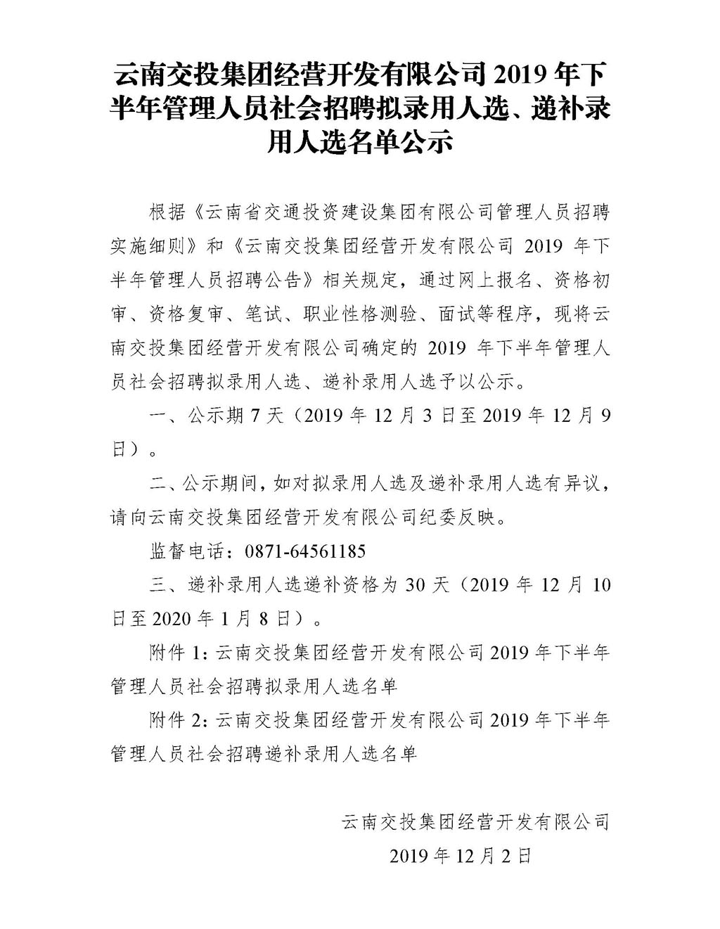 下半年管理人員社會(huì)招聘擬錄用人選、遞補(bǔ)錄用人選名單公示