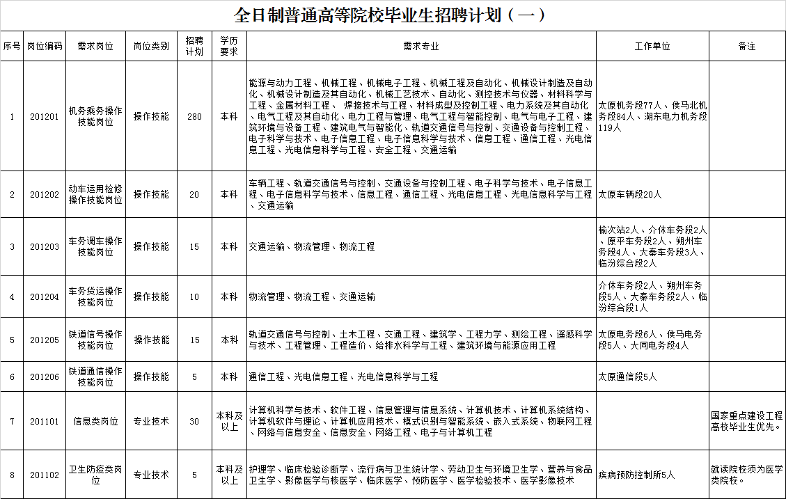 (五)須符合招聘崗位要求的其它條件。服從我公司對崗位的安排和調(diào)整,適應長期在鐵路沿線、偏遠山區(qū)、艱苦環(huán)境地區(qū)工作及戶外、野外、倒班、夜班作業(yè)要求。