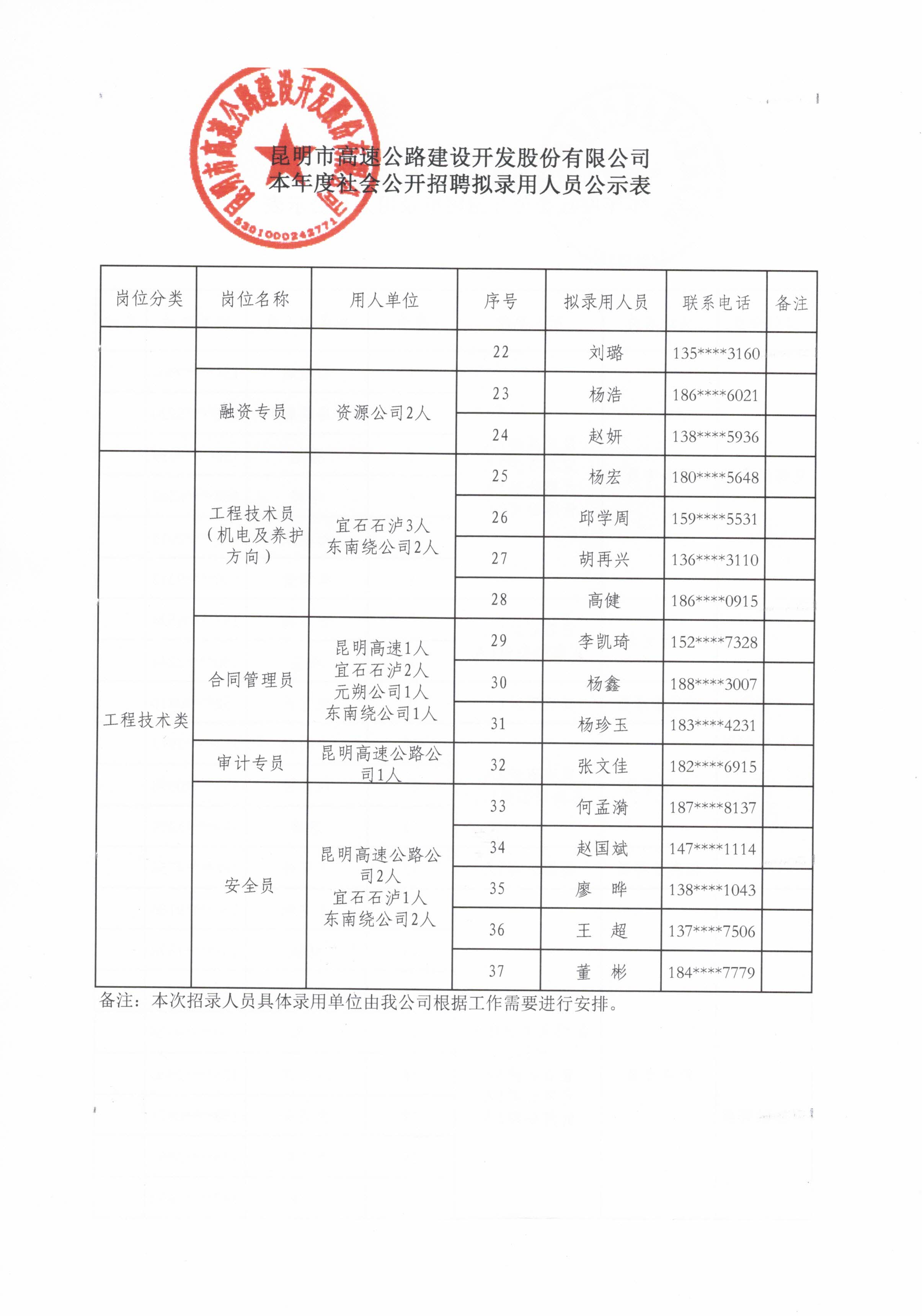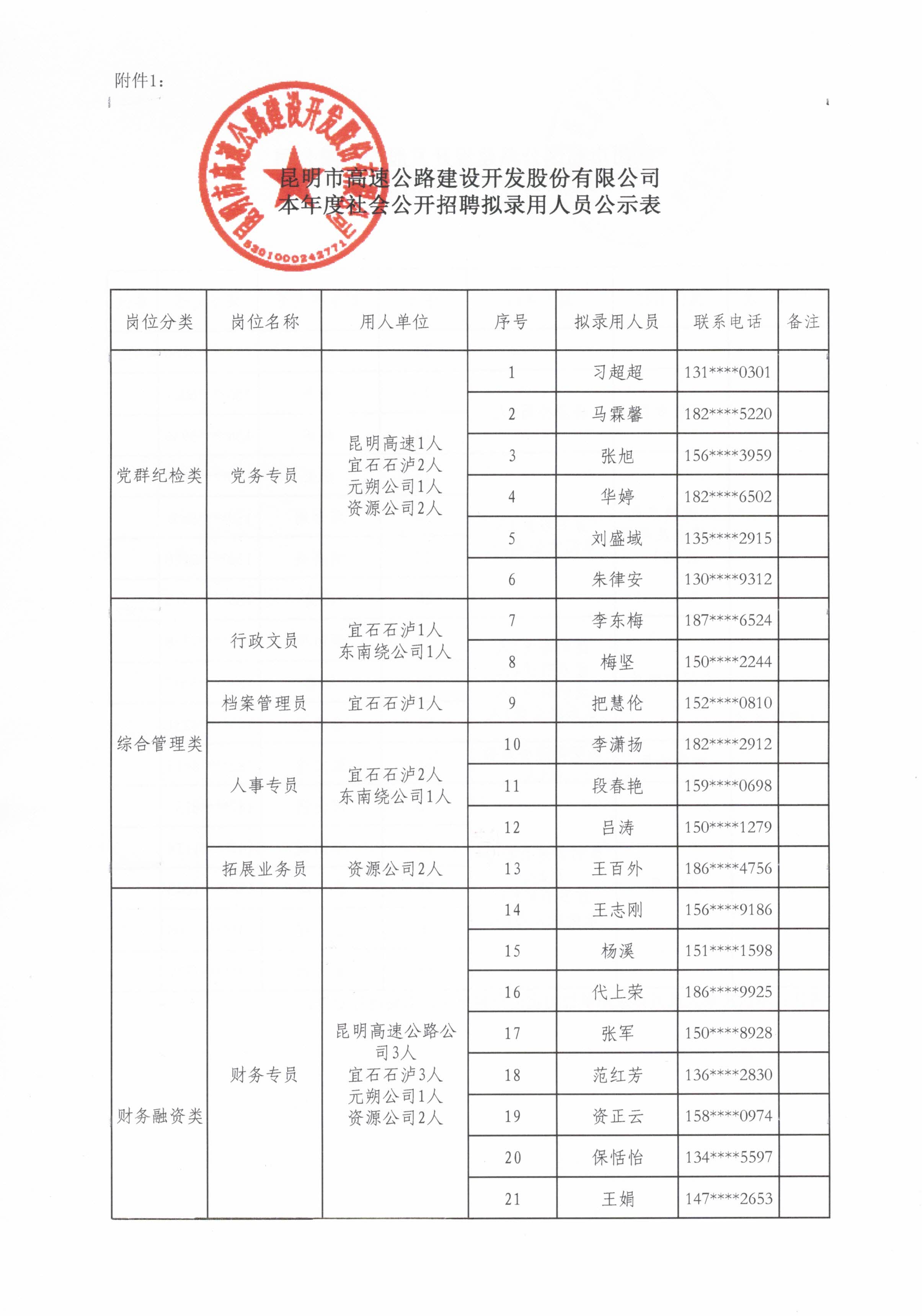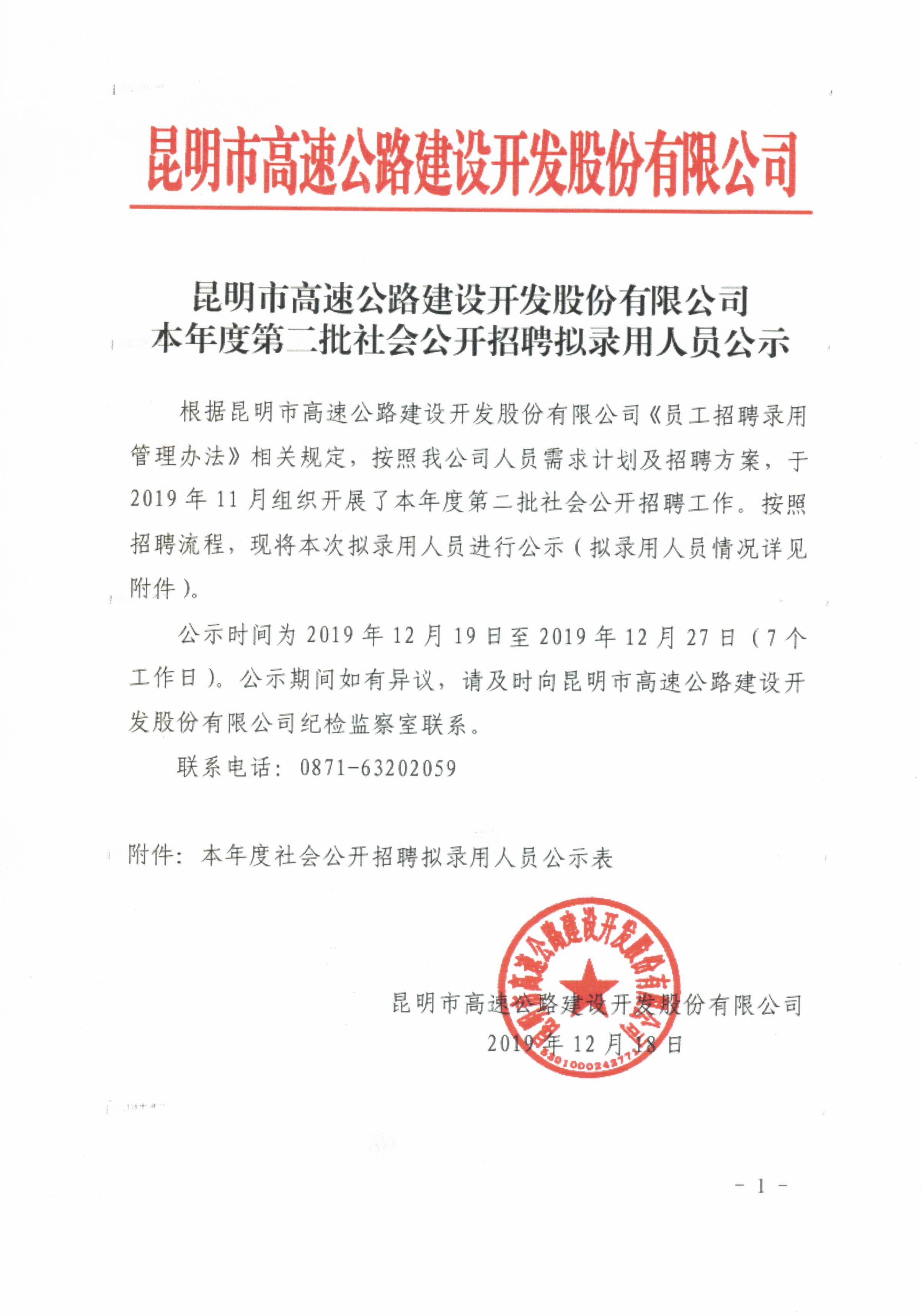 2019年昆明市高速公路社會(huì)招聘擬聘公示