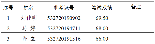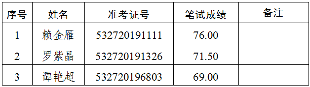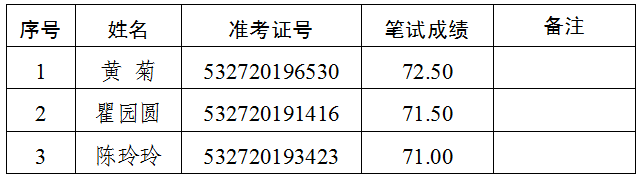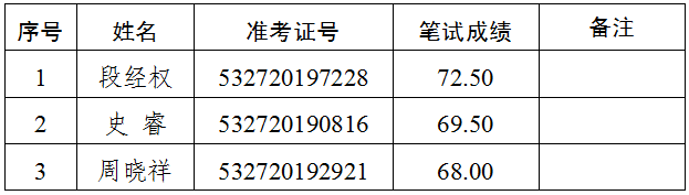 2.遞補情況:報考綜合文秘崗位(崗位代碼A004004),準(zhǔn)考證號碼532720194322號的考生,筆試成績69.50分,該崗位排名并列第一。經(jīng)再次資格審核,該考生不符合遴選崗位要求,取消面試及后續(xù)的遴選程序。按照普洱市中級人民法院2019年公開遴選公務(wù)員公告(第1號),遞補該崗位第四名考生(準(zhǔn)考證號:532720191516)進入面試。