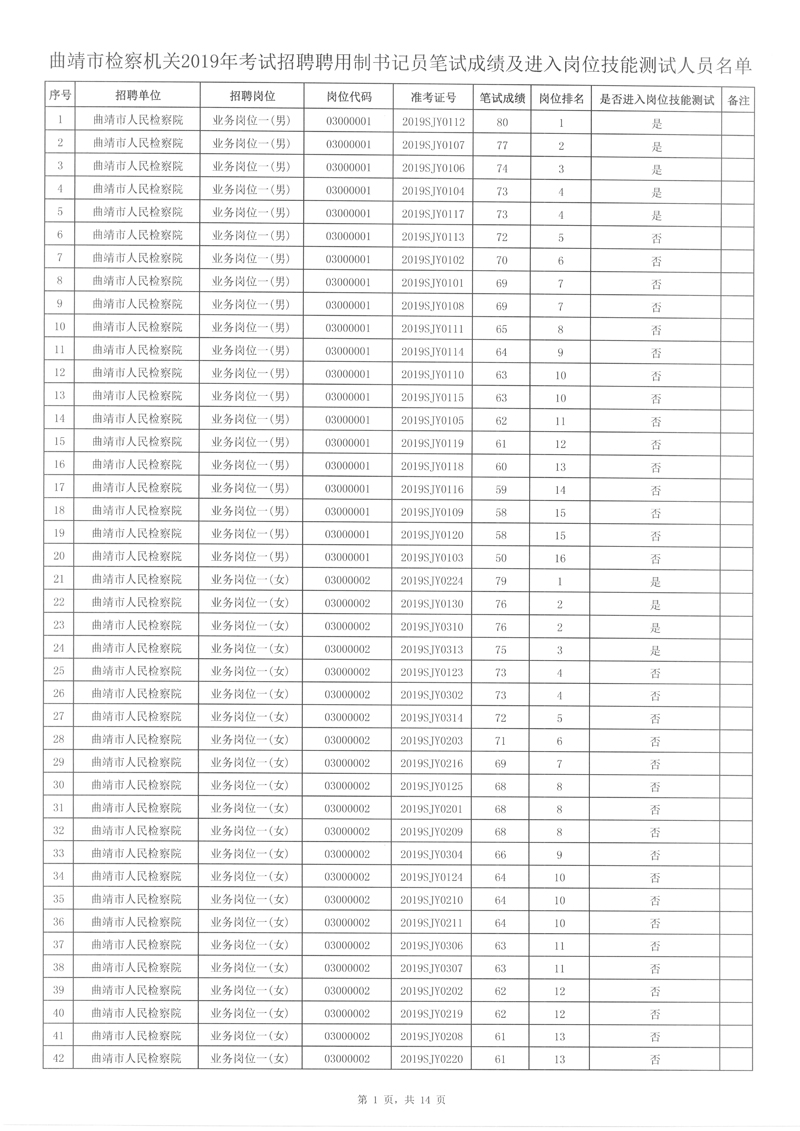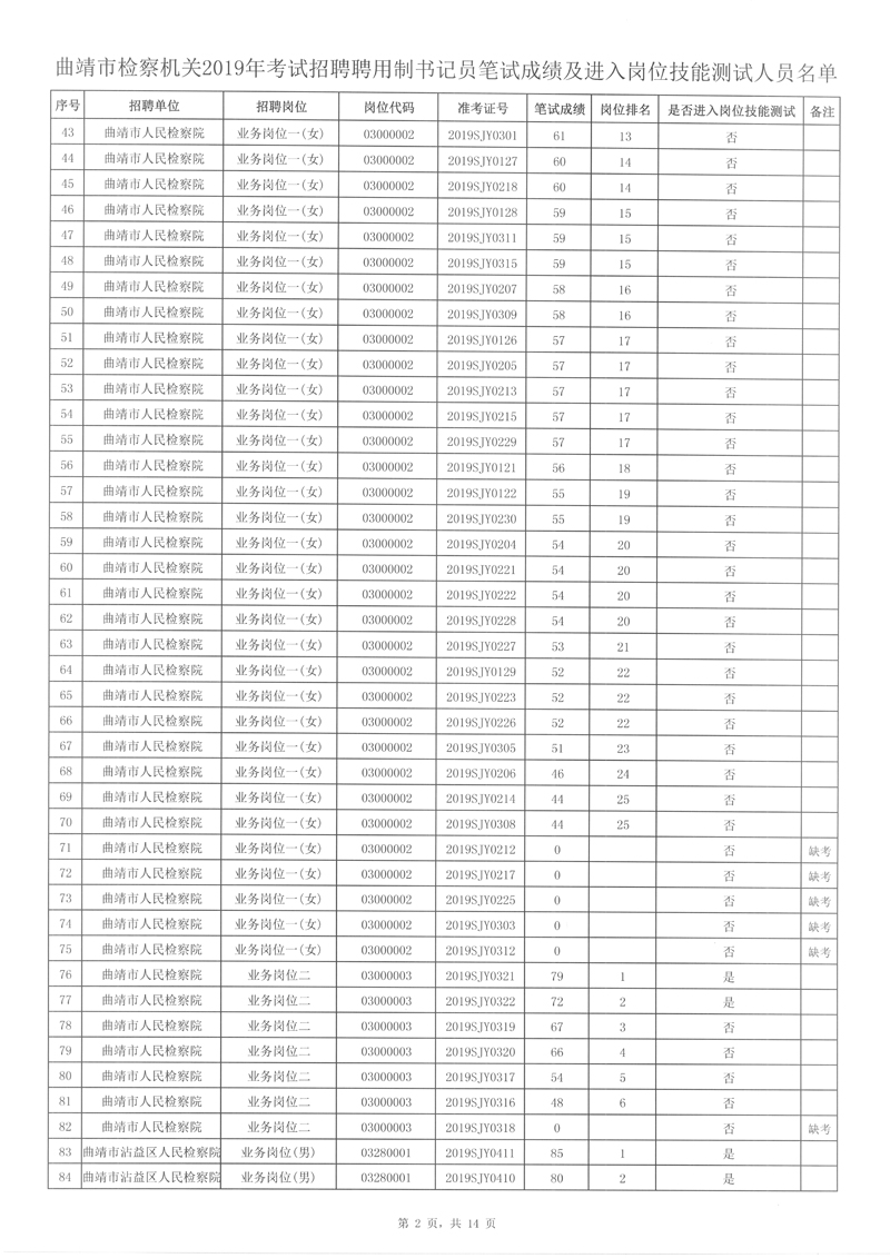 4、曲靖市檢察機關(guān)2019年考試招聘聘用制書記員筆試成績及進入崗位技能測試人員名單詳見附件。