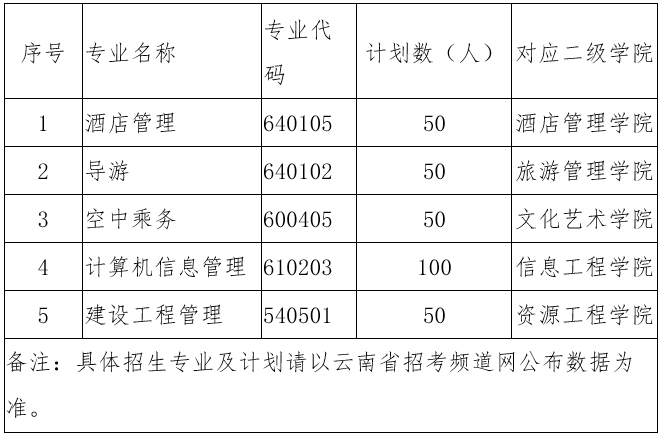 2.單獨(dú)招生錄取的考生,經(jīng)云南省招考院審核批準(zhǔn),由我校于2020年7月寄發(fā)錄取通知書給考生。