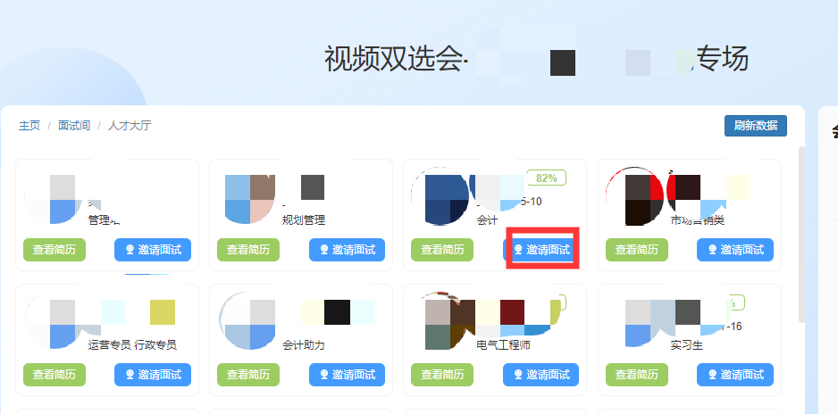 登錄企業(yè)后臺進(jìn)入視頻雙選會—西南林業(yè)大學(xué)2020年畢業(yè)生網(wǎng)絡(luò)視頻雙選會,點擊“進(jìn)入大廳”,篩選簡歷。