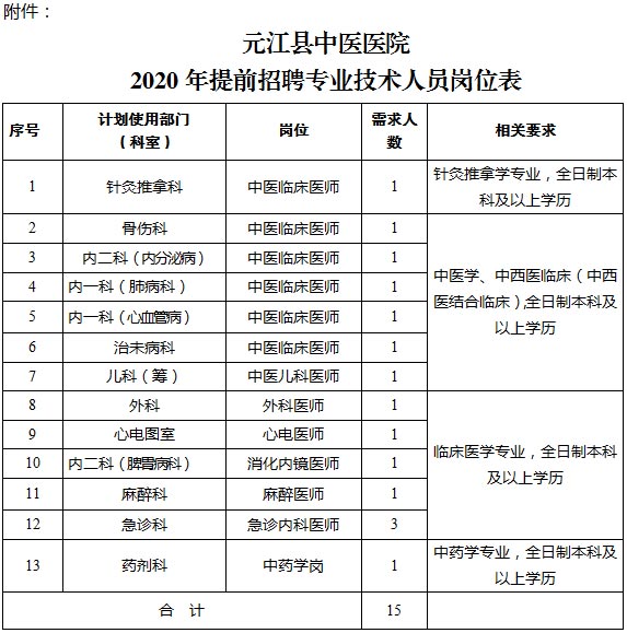 元江縣中醫(yī)醫(yī)院2020年提前招聘編制內(nèi)工作人員公告