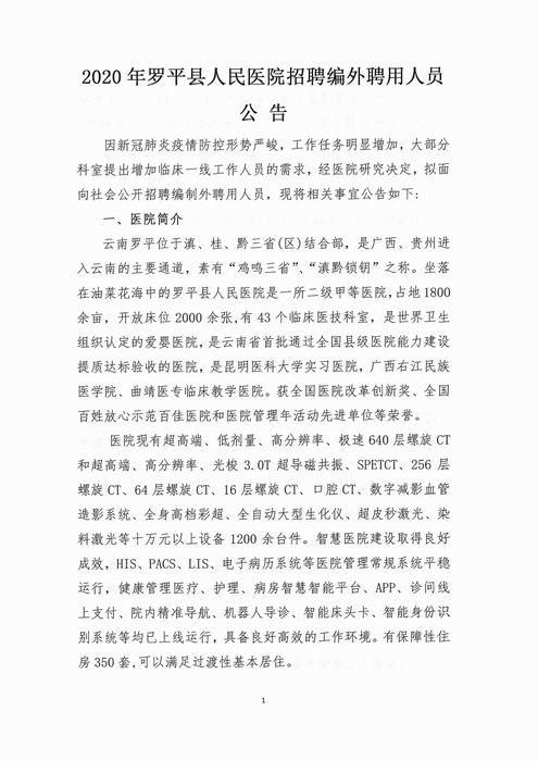 2020年羅平縣人民醫(yī)院招聘編外聘用人員公告