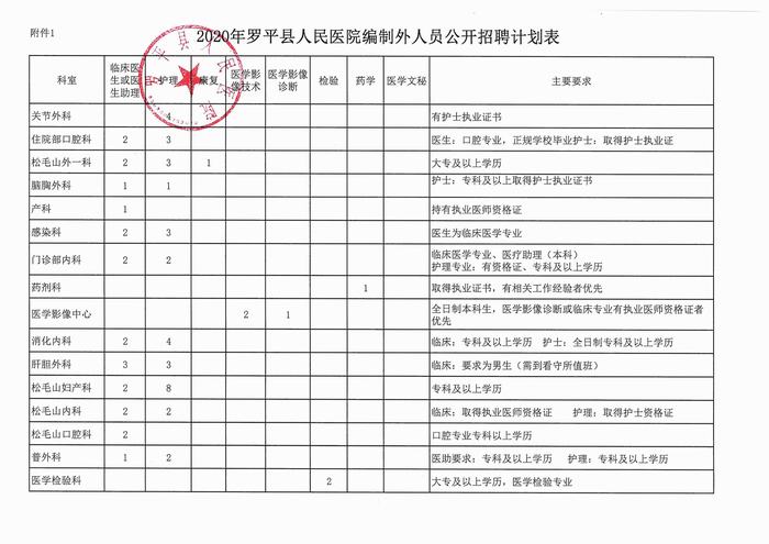 附件1:《2020年羅平縣人民醫(yī)院編制外人員公開招聘計(jì)劃表》