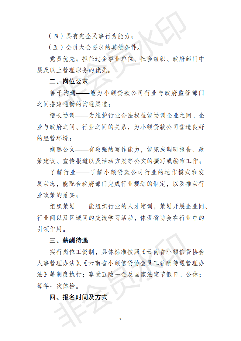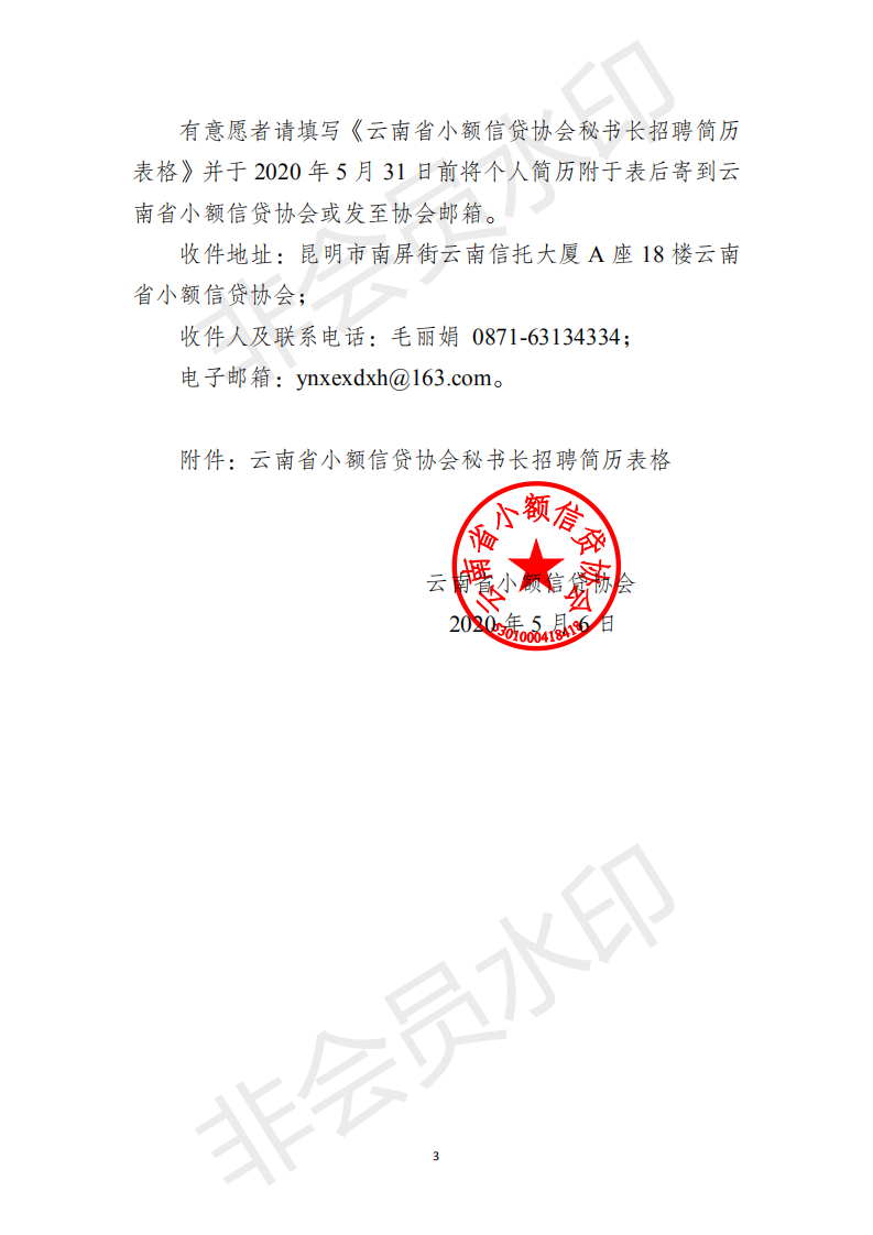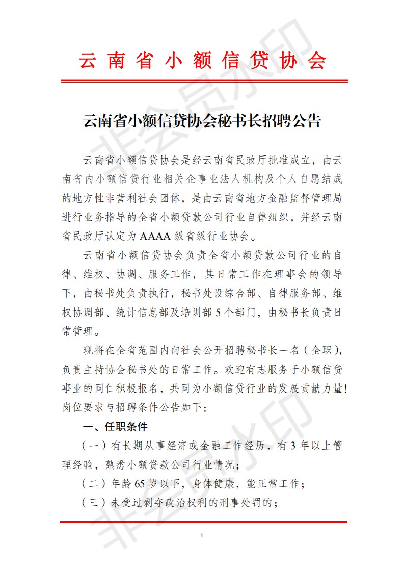 2020年云南省小額信貸協(xié)會(huì)秘書長(zhǎng)招聘公告