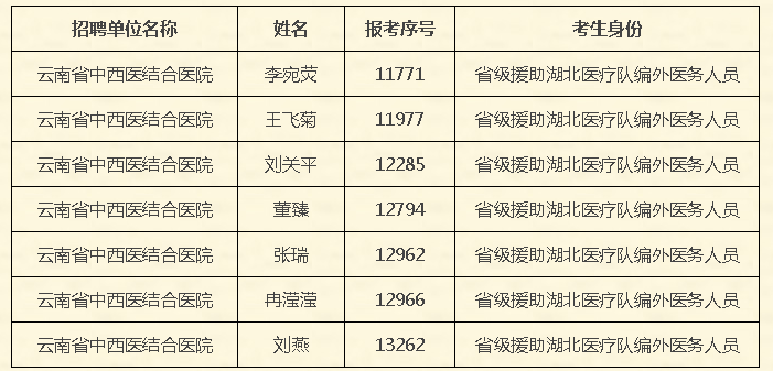 云南省衛(wèi)生健康委所屬醫(yī)療衛(wèi)生機(jī)構(gòu)面向新冠肺炎疫情防控一線醫(yī)務(wù)人員定向招聘報(bào)名資格審核通過(guò)人員名單