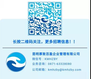 疫情期間本次招聘采用微信線上報(bào)名方式,報(bào)考人員須關(guān)注“昆明厚致百盈企業(yè)管理有限公司”微信公眾號(hào),每人限報(bào)一個(gè)崗位,多報(bào)崗位將取消報(bào)名資格。