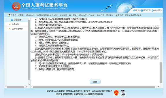 點(diǎn)擊“接受”按鈕,進(jìn)入查看考生承諾書的頁(yè)面,如下圖所示: