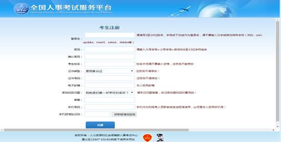 點(diǎn)擊“注冊(cè)”按鈕,進(jìn)入考生注冊(cè)頁(yè)面,如下圖所示:
