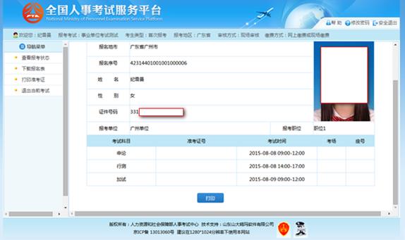 通過(guò)點(diǎn)擊系統(tǒng)導(dǎo)航菜單的“打印準(zhǔn)考證”選項(xiàng),可進(jìn)入準(zhǔn)考證打印頁(yè)面,如下圖所示: