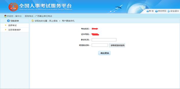 在該頁(yè)面可以完成對(duì)密碼找回及答案信息進(jìn)行修改,也可更換綁定的手機(jī)號(hào)。點(diǎn)擊“更換手機(jī)”按鈕,跳轉(zhuǎn)到更換手機(jī)頁(yè)面,通過(guò)該頁(yè)面可以完成綁定手機(jī)號(hào)的更換操作。