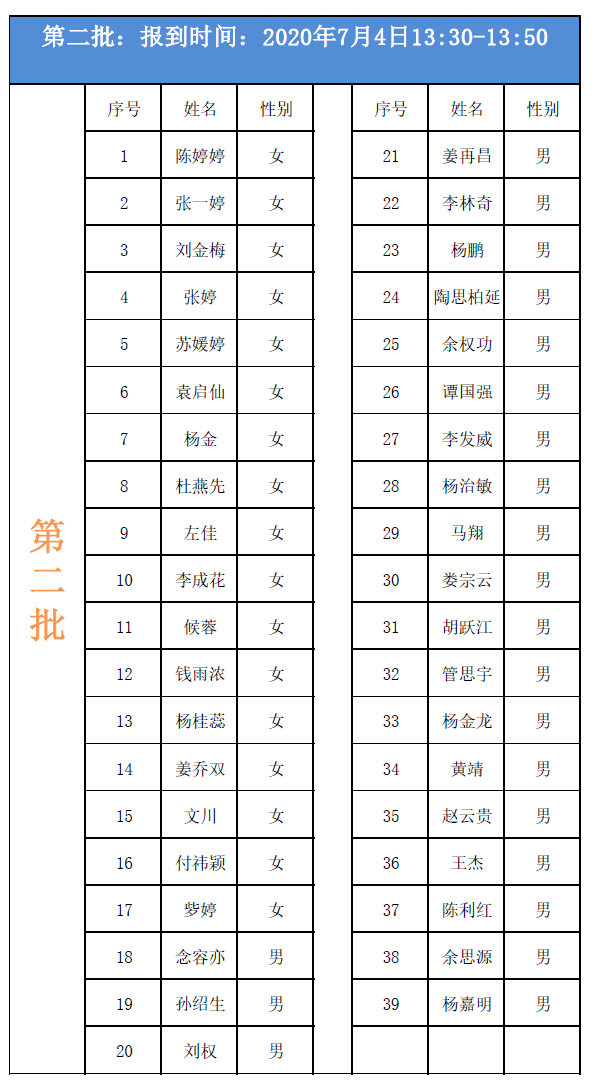 具體考生分組名單附后