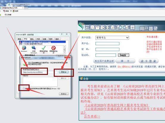 4、復(fù)制報(bào)名網(wǎng)址粘貼到添加輸入欄內(nèi)點(diǎn)擊添加(如果添加時(shí)提示:添加到該區(qū)域中的站點(diǎn)必須使用前綴https://,該前綴能確保連接的安全。則取消勾選對(duì)該區(qū)域中的所有站點(diǎn)要求服務(wù)器驗(yàn)證https)