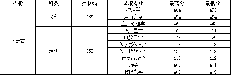 昆明醫(yī)科大學海源學院 2019年內(nèi)蒙古錄取分數(shù)線