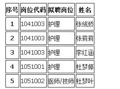 備注:護(hù)理崗位(崗位代碼1041003)筆試成績(jī)排名第一考生楊瑞麗因懷孕延期體檢,待延期體檢合格后再按程序辦理聘用。