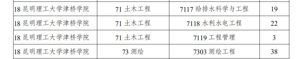 昆明理工大學(xué)津橋?qū)W院云南省專升本第二次線上征集計劃剩余一覽表